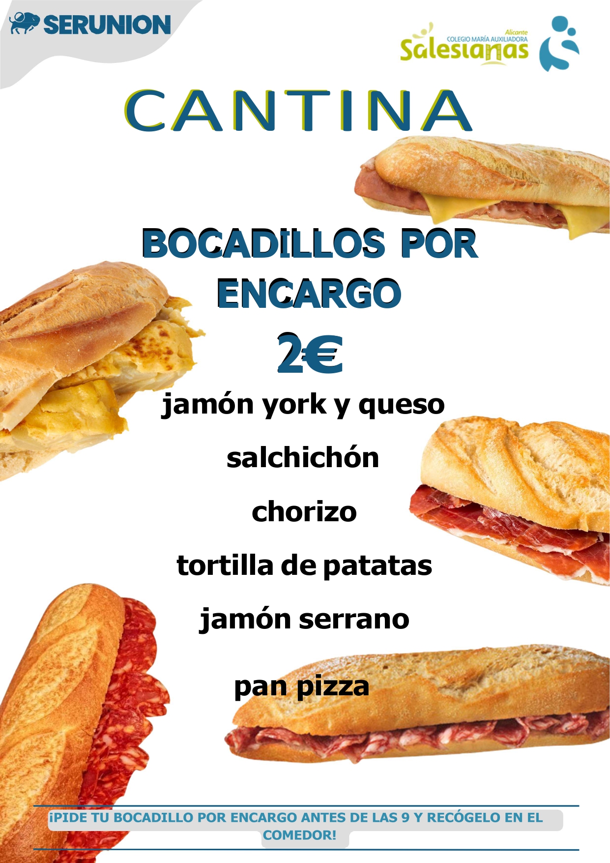 - La recogida se realizará en el comedor del centro a las 9:50 h. El pago será en efectivo y con precio único de 2€ cada bocata o pan pizza.